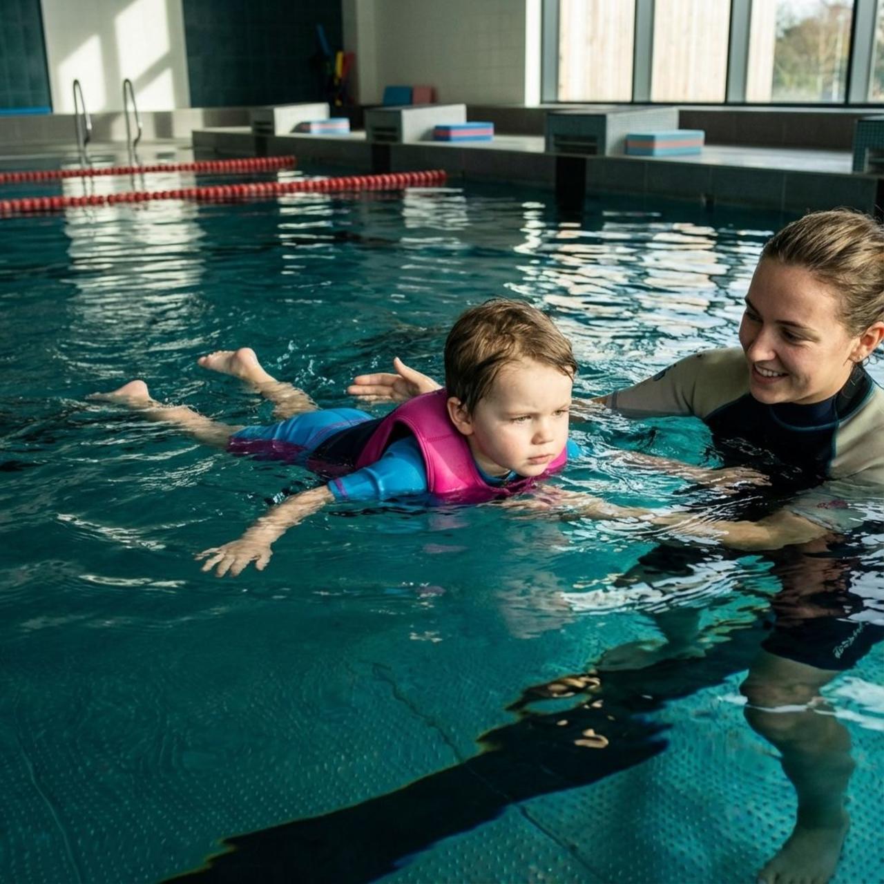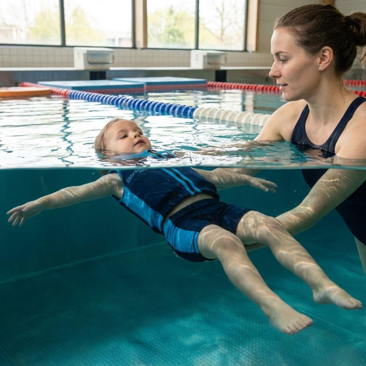 The water itself teaches children to trust their bodies. In deep water, children are invited to let go and feel how their own buoyancy supports them. This is very different from standing in a shallow pool, where children often cling to the wall or worry about the bottom. With a floating suit as a supportive learning aid, children can relax and use their arms and legs freely. They are not restricted or held back, which means they quickly discover what works for their unique body. That sense of freedom creates a powerful feeling of independence and trust.