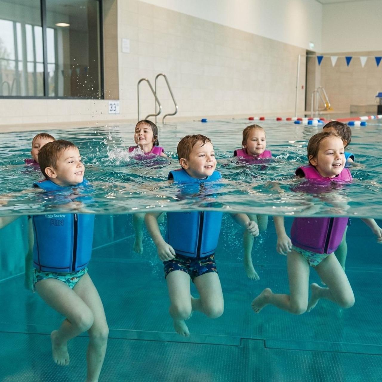 - Learning in deep water with a floating suit helps children move naturally while staying safe.