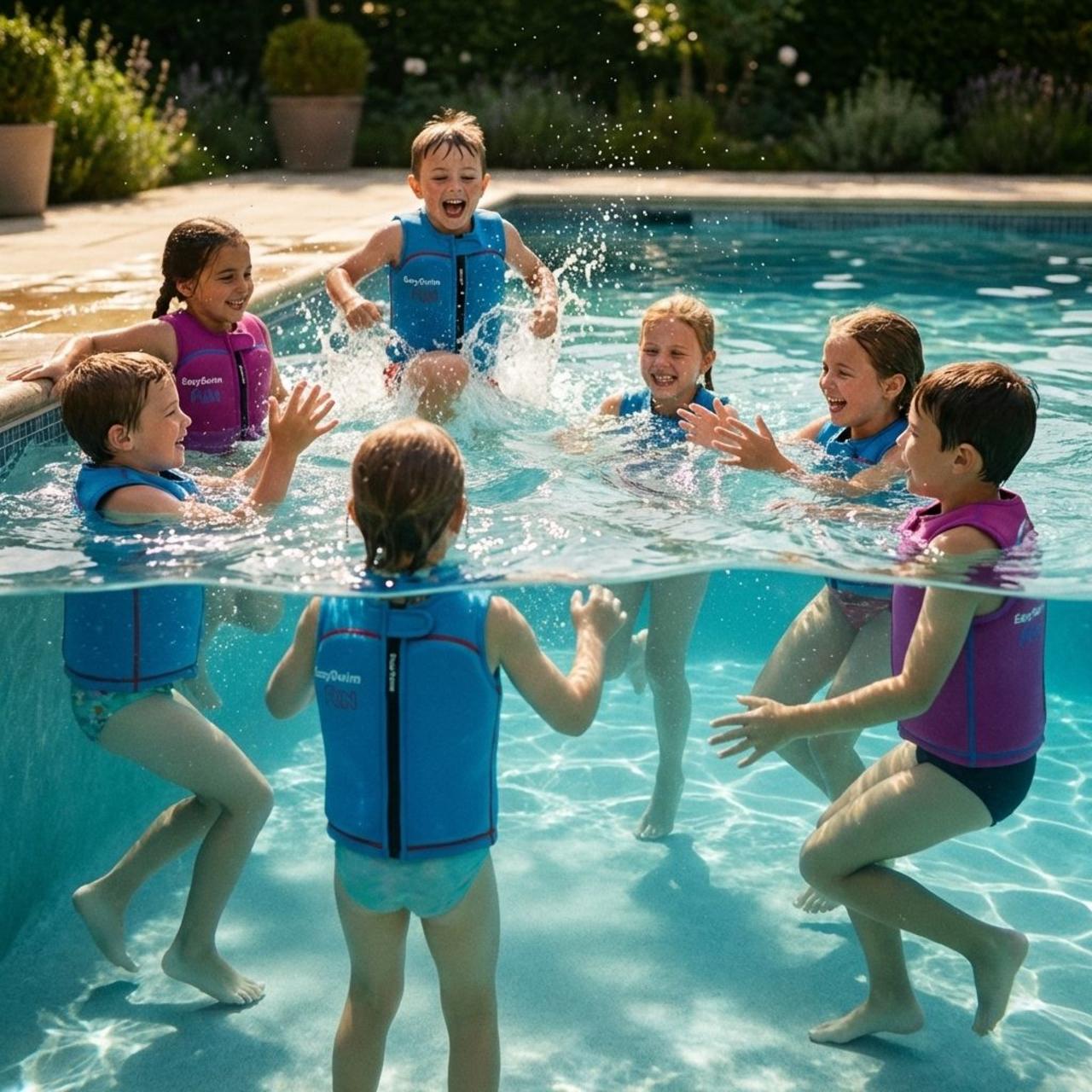 Learning in deep water gives children the chance to build real aquatic confidence and self-awareness. From the first session, children wear a special floating suit designed as a learning aid. This suit helps kids move freely and discover how their bodies naturally find balance, all while staying completely safe. Getting comfortable with depth cultivates trust not only in the water, but between the child and everyone supporting them. Many parents say they are amazed at how quickly their child learns to relax and explore, especially when they see it happening with their own eyes.