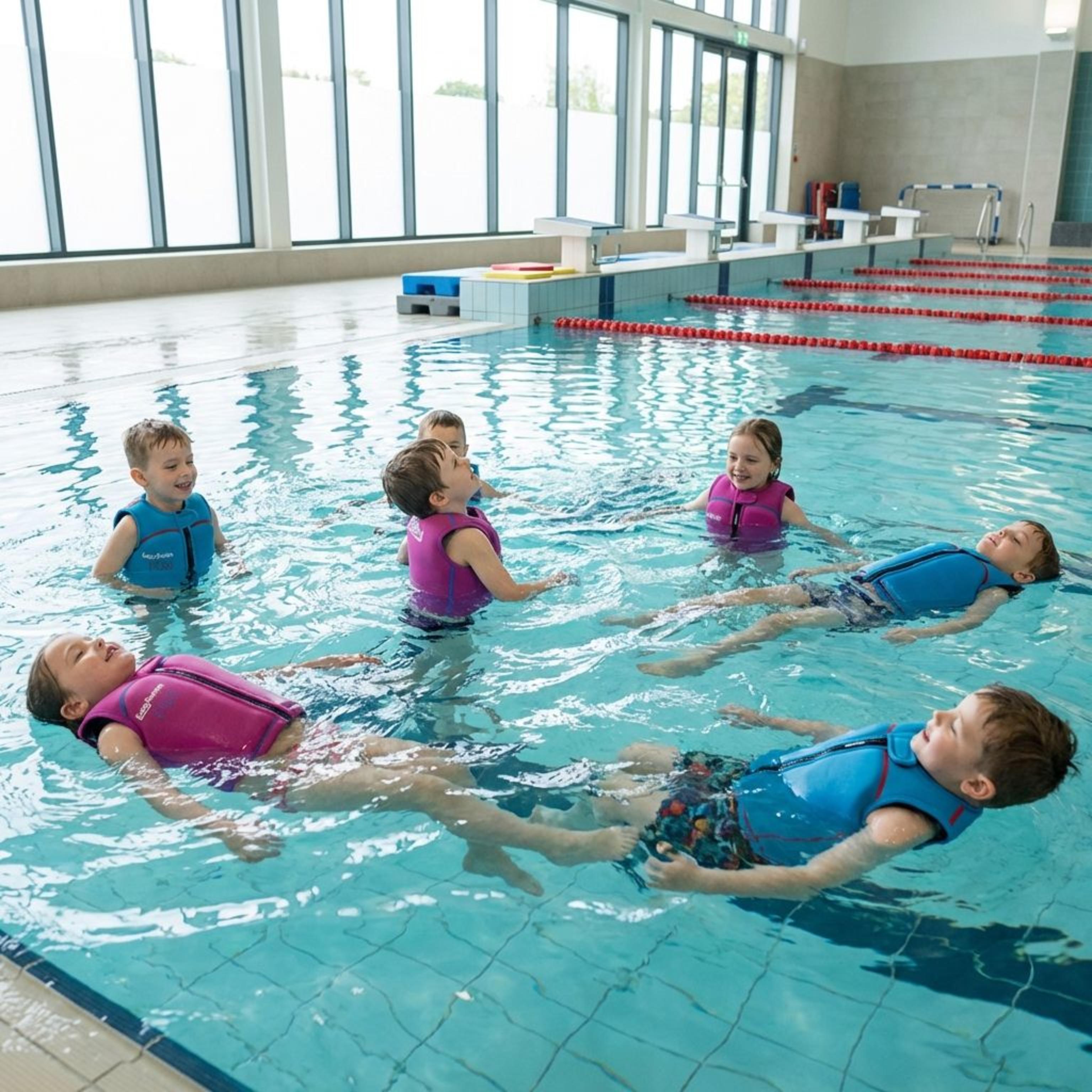 - Gently supported deep-water learning with floating suits helps children discover their own strength and independence.