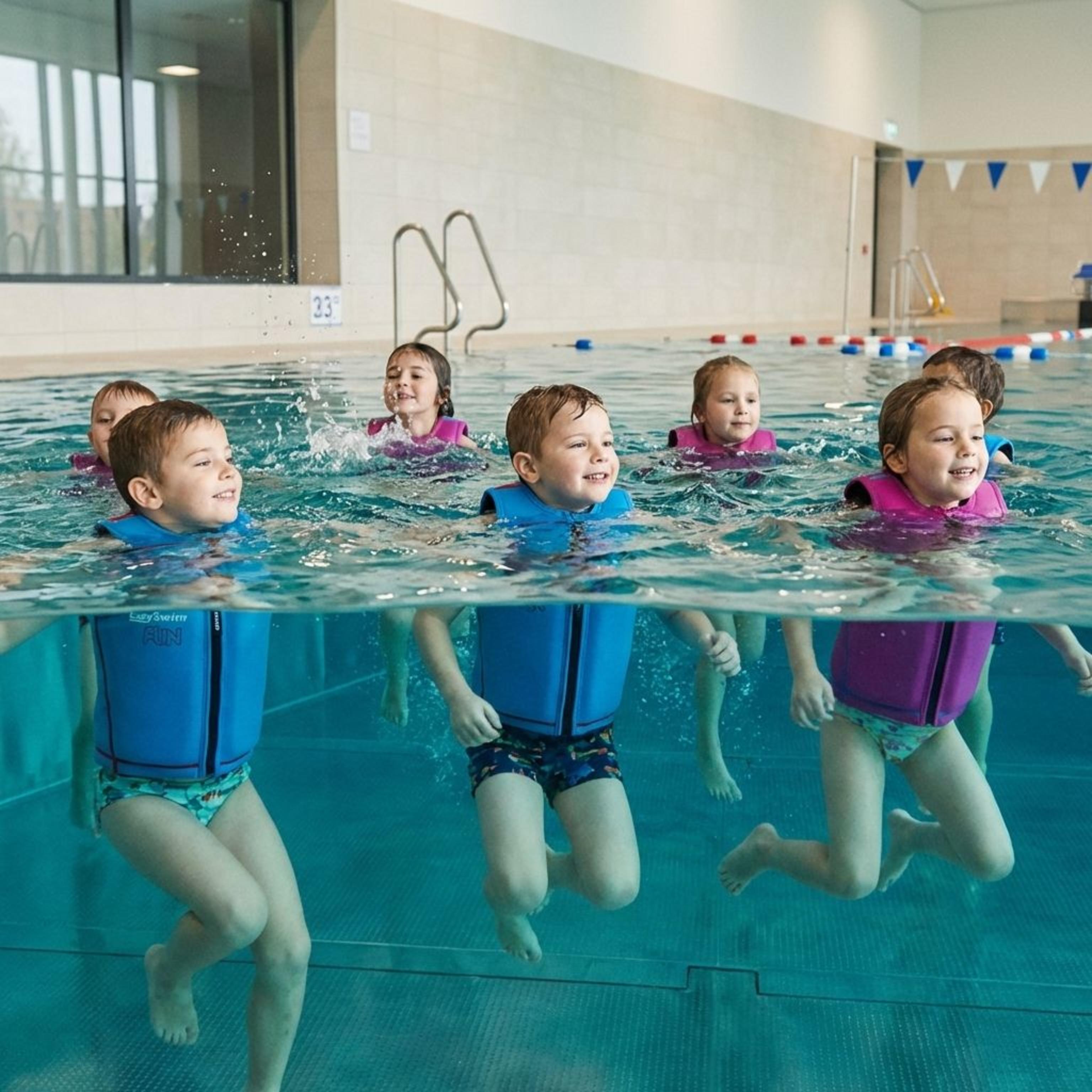We teach from the first lesson in deep water, which may seem surprising. But with the support of our floating suit, children learn to trust both the water and themselves. This environment removes the urge to put feet down, so instead of clinging to the edge, kids explore how their own bodies float and move. They discover balance, breath, and movement without fear. Our webshop offers these special floating suits, designed to keep children safe and free, so confidence comes before technique every single time.
